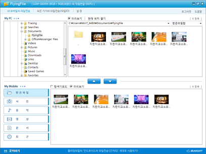 * 사진, 음악, 동영상, 문서별로 파일을 한눈에 볼 수 있고 전송할 수 있습니다.