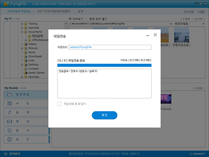 * 데이터(3G/LTE)를 사용하지 않는 파일전송