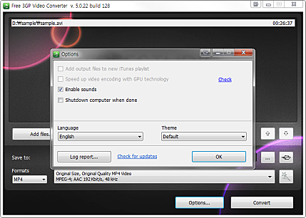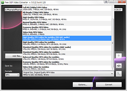 3GP, AVI, MP4, MP3에 최적화된 포맷으로 변환시켜 줍니다.