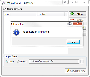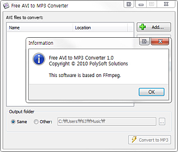 AVI 파일을 MP3 파일로 변환시켜주는 프로그램입니다.