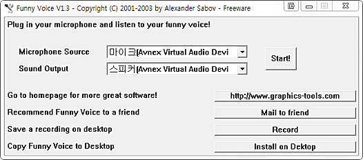 음성을 여러가지의 높낮이로 재미있게 변조 시켜주는 프로그램입니다.