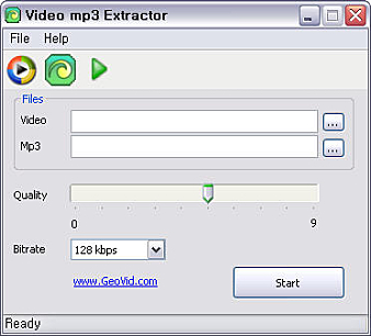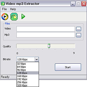 상세정보 추출한 MP3 파일이 저장될 폴더 및 파일의 이름을 설정할 수 있습니다. Start 버튼을 클릭하면 쉽게 추출을 할 수 있습니다. 퀄리티 및 Bitrate를 설정해 줄 수 있습니다.