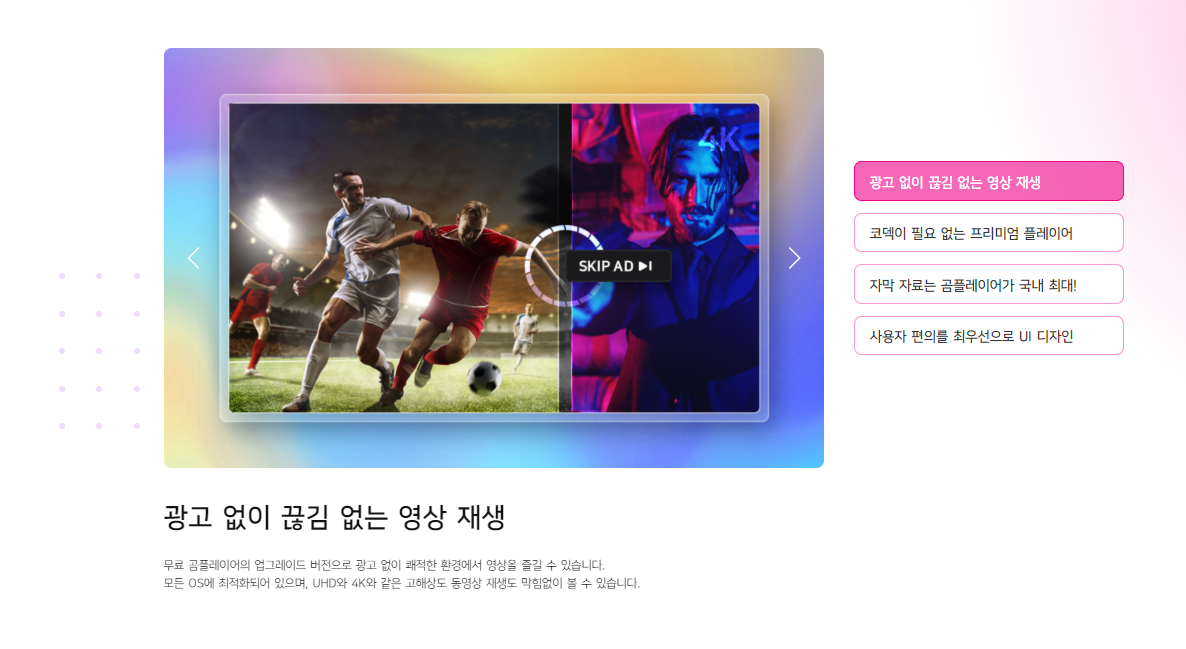 *광고 없이 쾌적한 환경에서 영상을 즐길 수 있습니다.