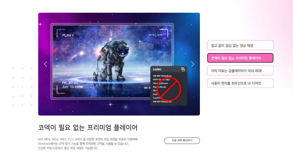 * 코덱이 없어 재생되지 않는 동영상은 코덱 찾기 창에서 빠르게 가장 최적의 코덱을 찾아 다운로드 하여 동영상을 감상할 수 있도록 해줍니다.