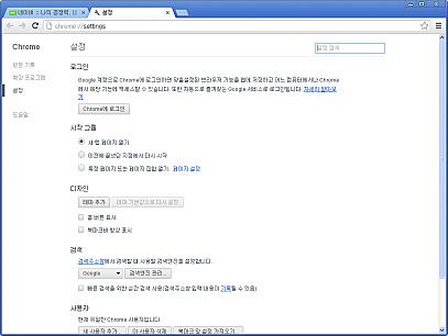 크롬의 브라우저창은 간결하고 정돈되어 있으며 간단합니다.
