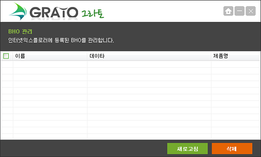 * 불필요한 BHO(Browser Helper Object)의 선택/전체 삭제 기능을 제공합니다.