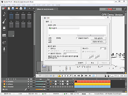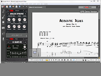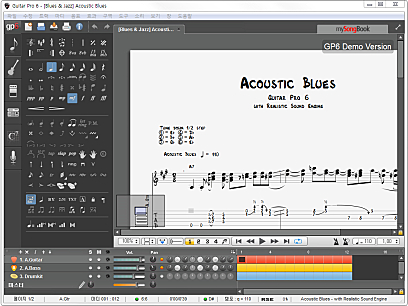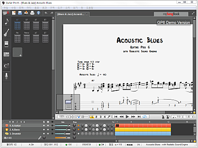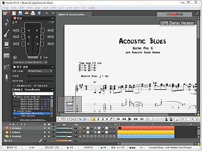 기타 악보 편집을 위한 Tablature 편집기 사용이 가능하며, 타악기와 피아노트랙에 대한 지원이 가능합니다.