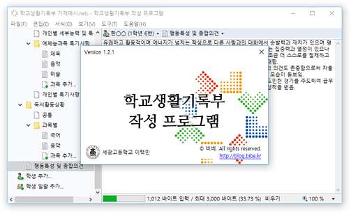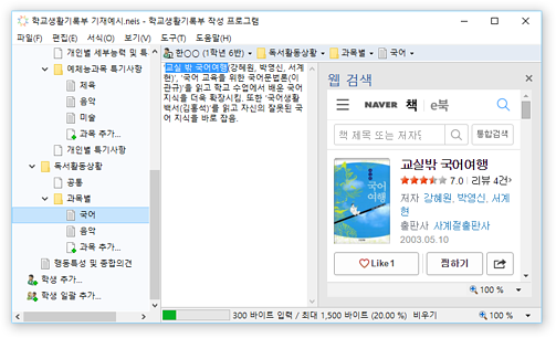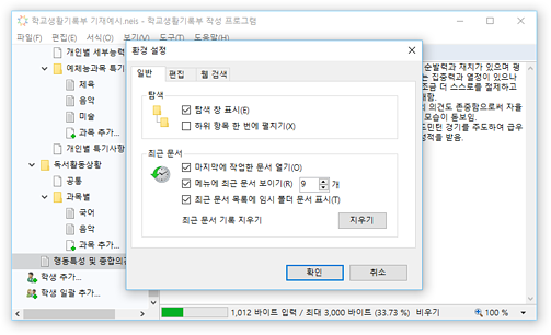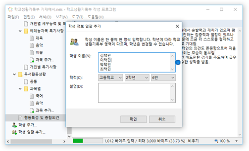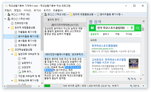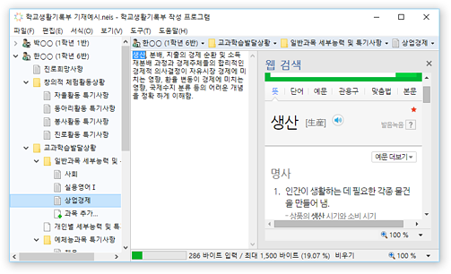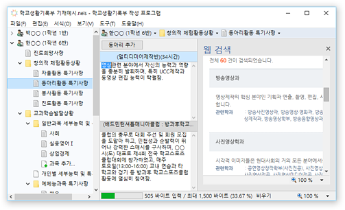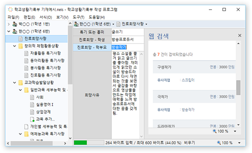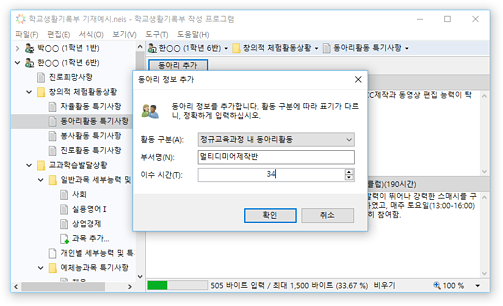 * 진로희망사항, 동아리활동 특기사항 등의 학교생활기록부 입력 영역에서 확장 입력 및 바이트 계산을 지원합니다.
