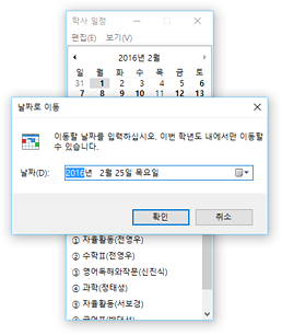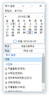 * 사용자가 입력한 학교 및 학급 정보를 기반으로 교육행정정보시스템(NEIS)과 연동하여 학사 일정 및 학급 별 시간표를 조회할 수 있습니다.