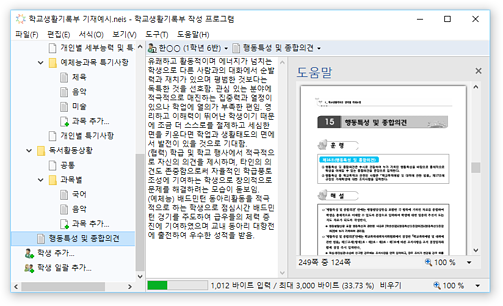 * 입력 중인 학교생활기록부 입력 영역에 대한 기재 요령 도움말을 제공하여, 작성과 동시에 간편하게 확인할 수 있습니다.