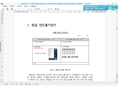 한컴오피스의 한글(*.hwp), 한셀(*.cell), 한쇼(*.show) 문서를 포함한 MS Office 등의 다양한 포멧의 문서를 읽을수 있는 프로그램입니다.