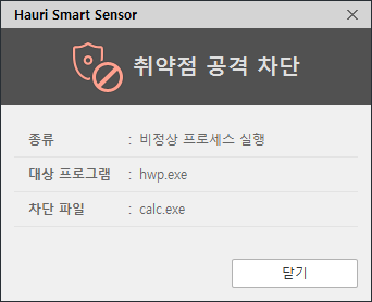 * 랜섬웨어, 취약점 공격, MBR 변조를 탐지/차단하며, 시작 프로그램 등록을 탐지할 수 있습니다.