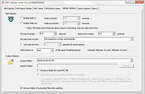 용량이 큰 MP3를 조각 개수 , 시간 , 사용자 정의 에 따라 분할하거나 조각난 파일을 하나로 통합할 수 있습니다. 파일의 분할하려는 위치를 슬라이더 막대를 설정하여 시각적으로 확인할 수 있습니다.