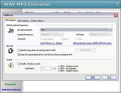 상세정보 MP3, WAV 파일을 일괄적으로 변환하는 것이 가능합니다. MP3, WAV 파일을 리 샘플링 해주는 기능이 있습니다. 변환할 때 사운드 볼륨을 설정할 수 있습니다. 드래그 앤 드롭 기능을 지원합니다.