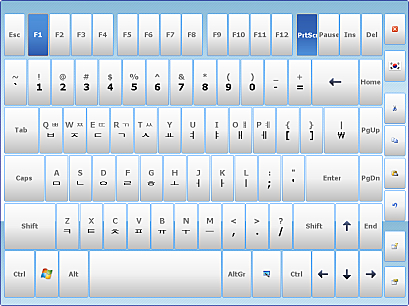 가상 화면으로 스크린 키보드 입력 기능하며 여러 언어와 키보드에서의 레이아웃을 지원합니다.