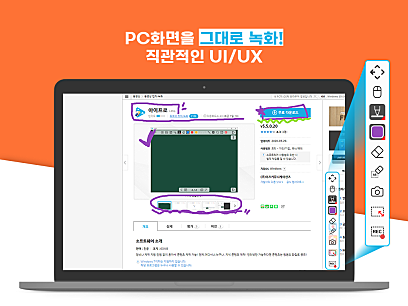 장비없이 혼자서 온라인 강의 등의 콘텐츠 제작 가능! 컴퓨터 화면 녹화, 동영상 녹화도 문제없이! 인터넷만 가능하다면 콘텐츠는 원본의 화질로 공유!
