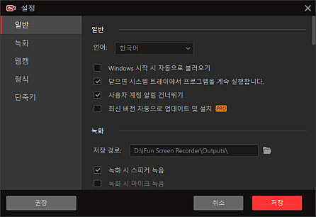 녹화 중에 단축키로 스크린샷을 찍을 수 있습니다.