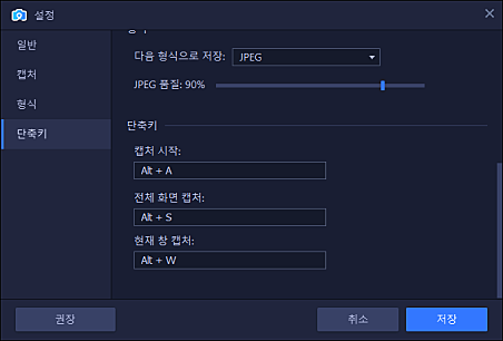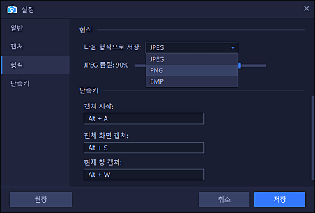 캡처한 스크린샷은 JPEG, PNG, BMP 등 가장 많이 사용되는 이미지 형식으로 저장할 수 있습니다.