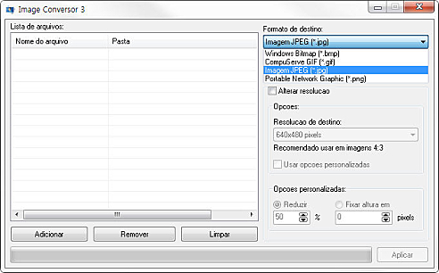 Alias/Wave frontimages(*.rla;*.rpf), Autodeskimages(*.cel;*.pic), Dr. Haloimages(*.cut), Encapsulated Postscriptimages(*.eps), JPGimages(*.jfif;*.jpe;*.jpeg;*.jpg), Kodak Photo-CD images(*.pcd), Paintshop Pro images(*.psp), Photoshopimages(*.pdd;*.psd), Portablemapimages(*.pbm;*.pgm;*.ppm), Portablenetworkgraphic images(*.png), SGI images(*.bw;*.rgb;*.rg ba;*.sgi), Tagged image file formatimages(*.fax;*.tif;*.tiff), Truevisionimages(*.ic b;*.tga;*.vda;*.vst;*.win). Windows bitmaps(*.bmp;*.dib;*.rle), Windowsicons(*.ico), Windows met afiles(*.emf;*.wmf), Z Soft Paint brushimages(*.pcc;*.pcx;*.scr), Permite converter paraos formatos, JPG, BMP, GIF, PNG