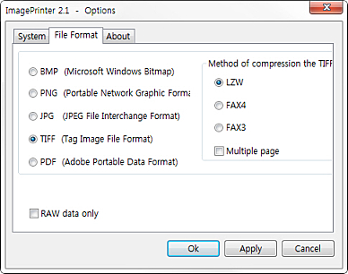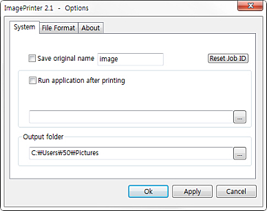 ImagePrinter 옵션 메뉴를 먼저 실행해 파일 형식을 설정하고 사용하면 됩니다.