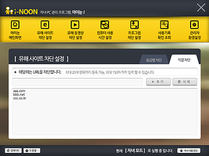 자녀들의 건전하고 올바른 인터넷 사용을 위하여 인터넷 상의 유해 사이트 접근 및 유해 동영상 시청을 차단하고,