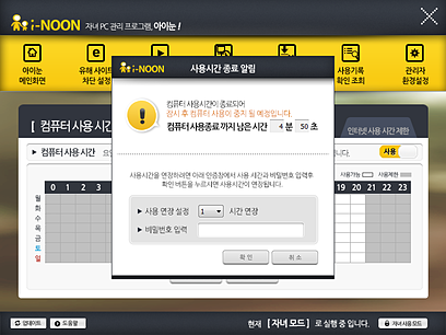 컴퓨터 및 인터넷 사용 시간 설정을 통해 자녀의 PC 사용 관리 및 지도를 도와주는 PC 관리 전문 프로그램입니다.