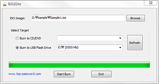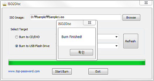 이 프로그램의 주요 기능으로서 CD/DVD 디스크 또는 USB 플래시 드라이브에 ISO 이미지 파일을 레코딩합니다.