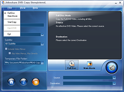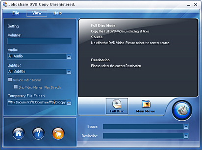 상세정보 소스를 DVD, DVD 폴더, ISO 이미지중 선택할 수 있으며, DVD를 DVD로 복사하거나 하드디스크에 저장, ISO 이미지로 저장등 다양한 방식으로 복사할 수 있습니다. 프로그램의 오른쪽 하단의 소스와 타겟을 선택한 뒤 Start Copy 버튼을 클릭하면 복사가 가능합니다.