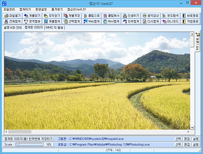 외부 핫키로 윈도우의 가변적 모양을 바로 캡쳐할 수 있습니다.