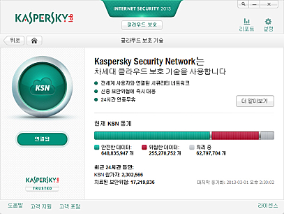 * Windows 8과 완벽하게 호환하는 Kaspersky Internet Security 2013은 더 나은 보호를 제공하는 기능들이 포함되어 있습니다.