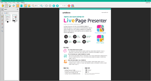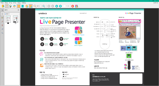 * 라이브페이지프레젠터 에디터 프로그램(*별도 판매)에서 편집하여 제작한 PDF 문서의 열람을 지원합니다.