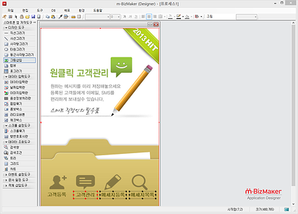 * m-BizBuilder에서는, 어떤 유형의 어플리케이션 프로그램이라도 만들 수 있는 만능 부품, 즉 컴포넌트들을 사전에 모두 만들어 제공함으로써, 더 이상 코딩이란 개념 자체가 필요 없는 완전한 재사용 기술을, 최초로 실용화 시켰습니다.