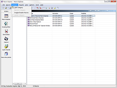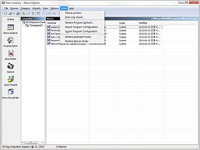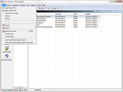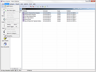 처음에는 두개의 매크로파일, samples.mex(샘플 매크로의 집합)와 macex.mex(사용자가 생성하고 저장할 수 있는)이 있습니다.