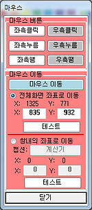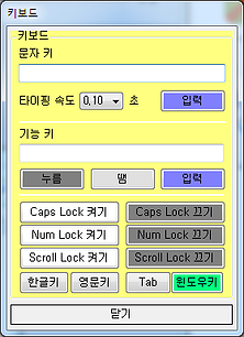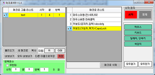 상세정보 키보드 매크로 기능 * 키보드 입력 버튼에 대한 반복 기능을 수행할 수 있습니다. 마우스 매크로 기능 * 마우스의 좌표 이동, 좌 클릭, 우 클릭, 드레그 등을 수행할 수 있습니다. 기타 기능 * 마우스 포인트 위치의 색감지 기능이 있어 다양한 작업을 할 수 있습니다.