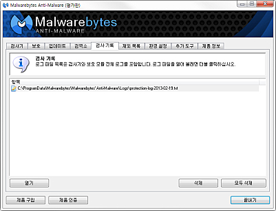검사기와 보호모듈 전체의 기록을 자동으로 저장하며, 저장된 로그들은 사용자의 편의에 따라 삭제가 가능합니다.