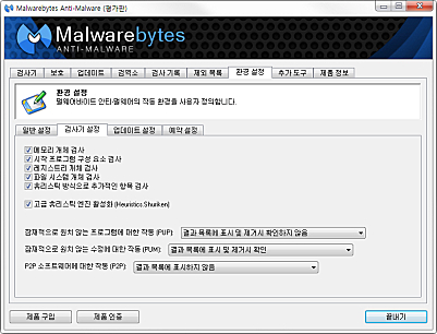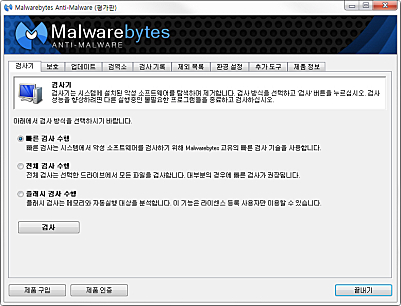 빠른 검사와 전체 검사를 통해 시스템에 설치된 악성 소프트웨어를 탐색하여 제거합니다.