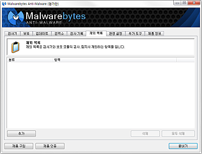 검사기와 보호모듈의 검사 및 탐지 시, 대상 항목에서 제외하여 따로 관리할 수 있는 개별 설정이 가능합니다.