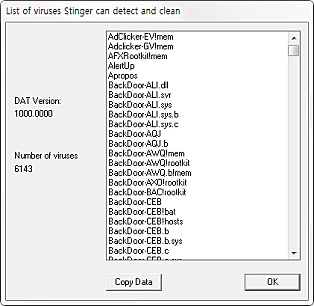 전체 바이러스를 막아주는 것은 아니지만, 스팅어는 새로운 악성코드와 유행 바이러스에 대한 검색목록을 일주일에 여러 번 업데이트 합니다.