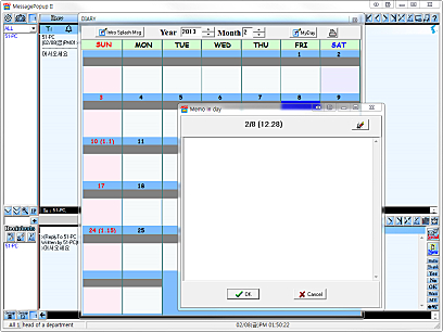 다이어리 기능을 이용하여 음력 양력 휴일, 자신이 설정한 기념일, 날짜별 메모 입력을 할 수 있습니다.