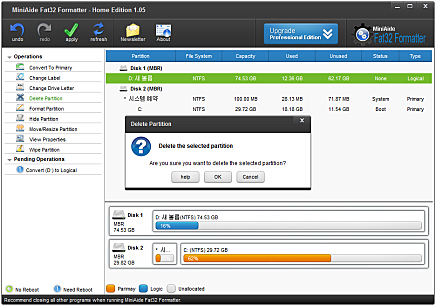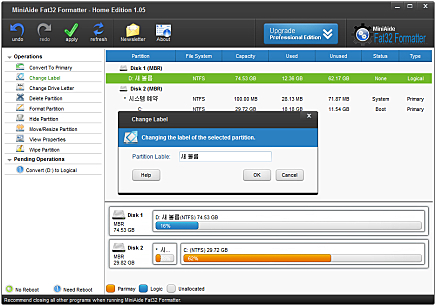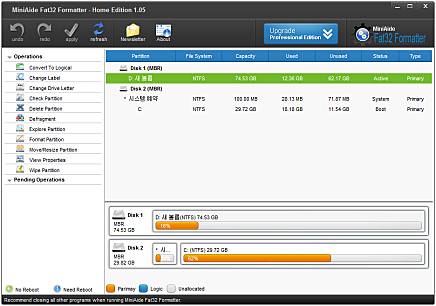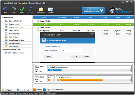 FAT32 형식으로 디스크를 포맷 할 수 있고, 2TB까지 지원가능한 프로그램입니다.