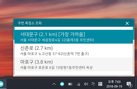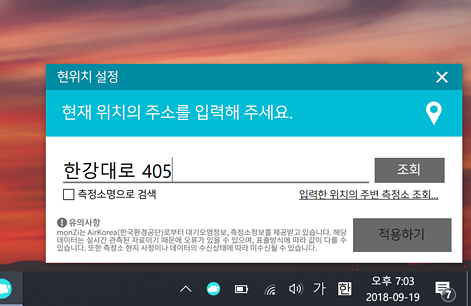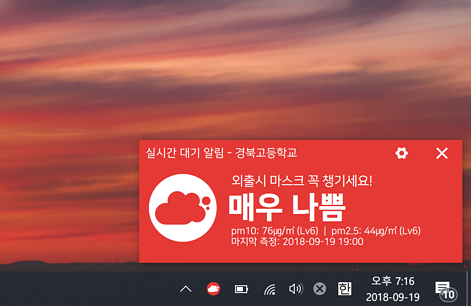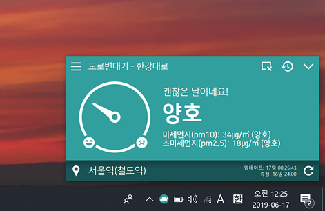 사용자가 지정한 위치의 미세먼지와 초미세먼지 정보를 실시간으로 업데이트하고 알려주는 실시간 대기정보 조회, 알림 프로그램입니다.