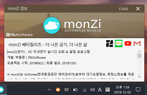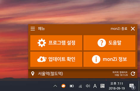 * monZi는 1시간 주기로 갱신되는 환국환경공단의 대기정보 측정값을 실시간으로 받아 대기 상태를 트레이 아이콘의 색상으로 바로 알 수 있도록 해드립니다.