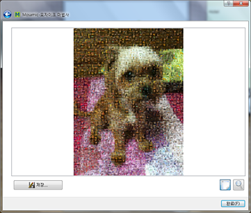 4. 타일이미지 설정 후 '닫기' 버튼을 누른 뒤 '모자이크 만들기'를 눌러 보세요. 놀라운 속도로 포토모자이크가 완성됩니다.