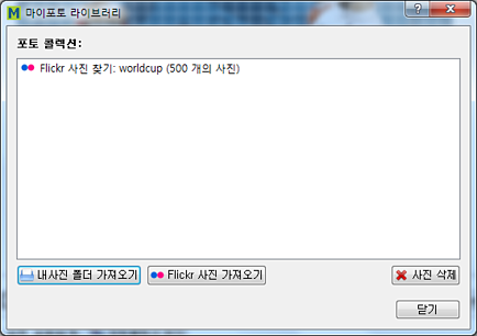 내 사진 폴더의 사진 뿐 아니라 최대 온라인 사진 공유 싸이트인 Flickr에서도 바로 원하는 이미지를 찾아서 이용 할 수 있는 프로그램입니다.