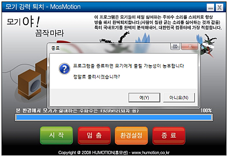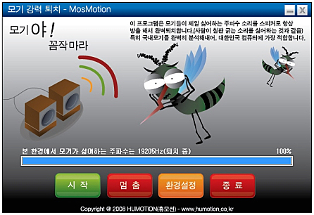 모기들이 싫어하는 소리를 사용해서 모기를 퇴치해주는 간단한 프로그램입니다.