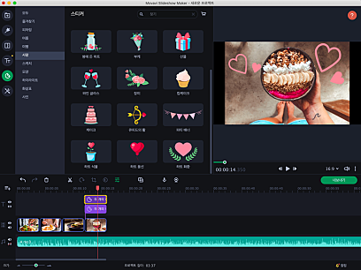 음악, 특가 이펙트, 전환 및 스티커를 추가하여 추억있는 사진 또는 비디오로 완벽한 슬라이드쇼를 제작해 보세요