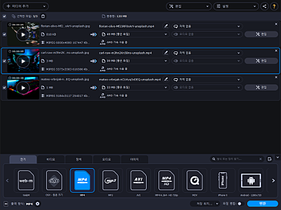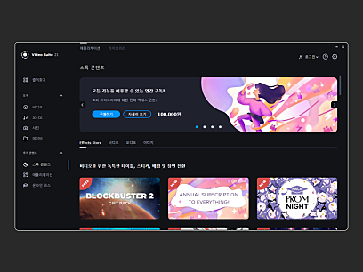 * 필터 (160개 이상), 전환 (100개 이상), 자막 (40개 이상), LUT 효과