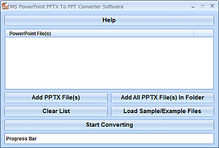 Microsoft Office PowerPoint 2007 이상에서 사용되는 PPTX 파일을 낮은 버전의 PPT 파일로 변환하는 프로그램입니다.