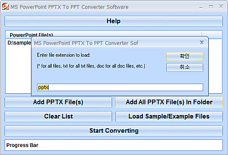 Microsoft Office PowerPoint 2007 이상의 버전에서 사용되는 PPTX 파일을 Microsoft Office Power Point 2003 이하 버전에서 사용되는 PPT 파일로 일괄 변환합니다.