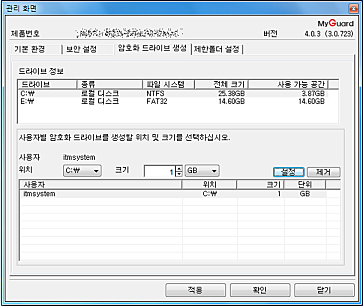 사용자가 용량을 지정하여 가상 암호화 드라이브를 생성합니다. 암호화 드라이브는 로그인 정보를 알고 있는 본인만이 접근 가능합니다.